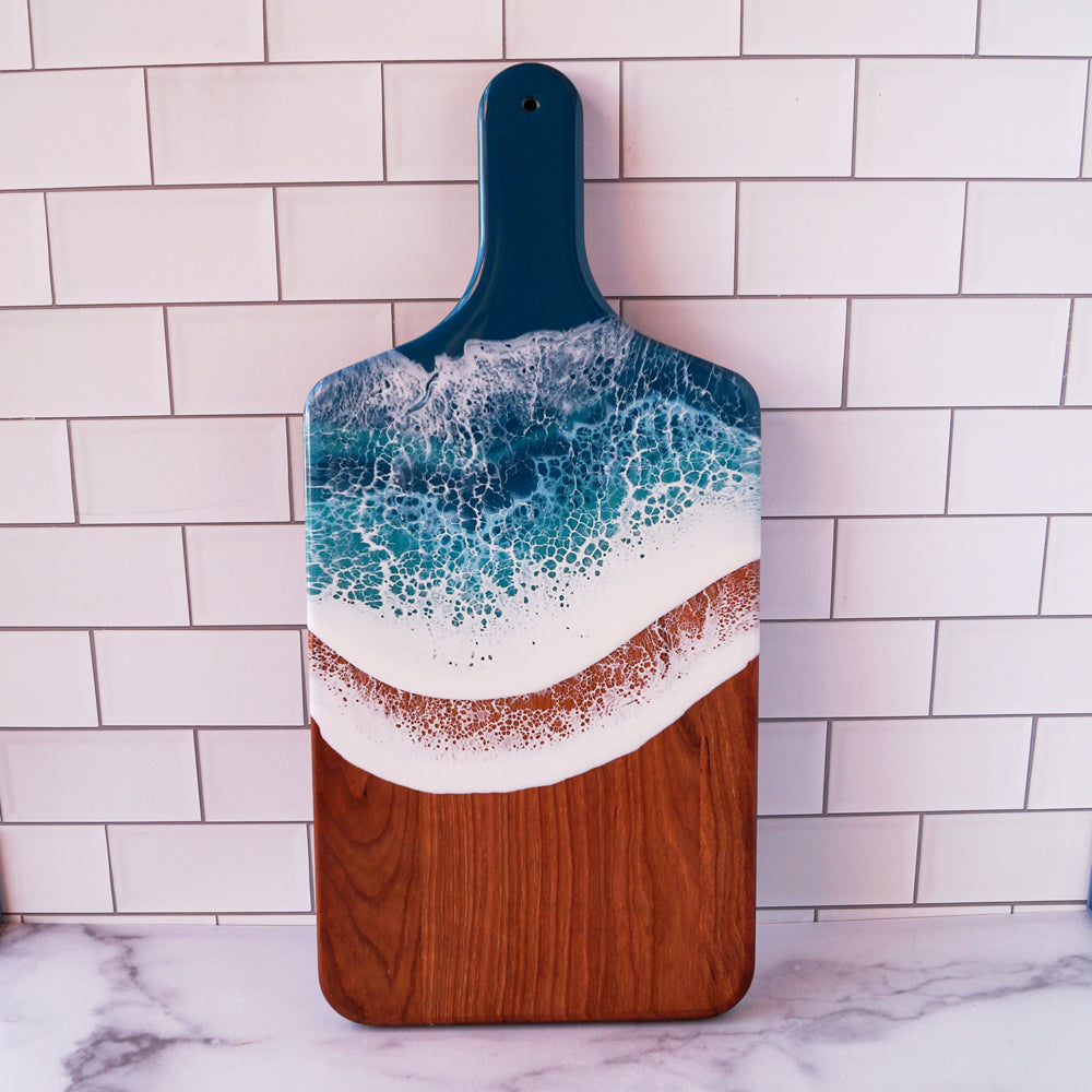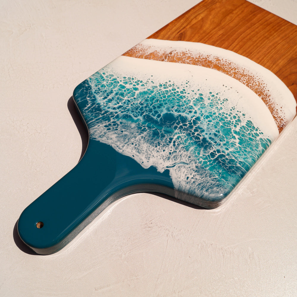 Cherry Wood Medium Serving Board w/ Handle - Tropical Lagoon