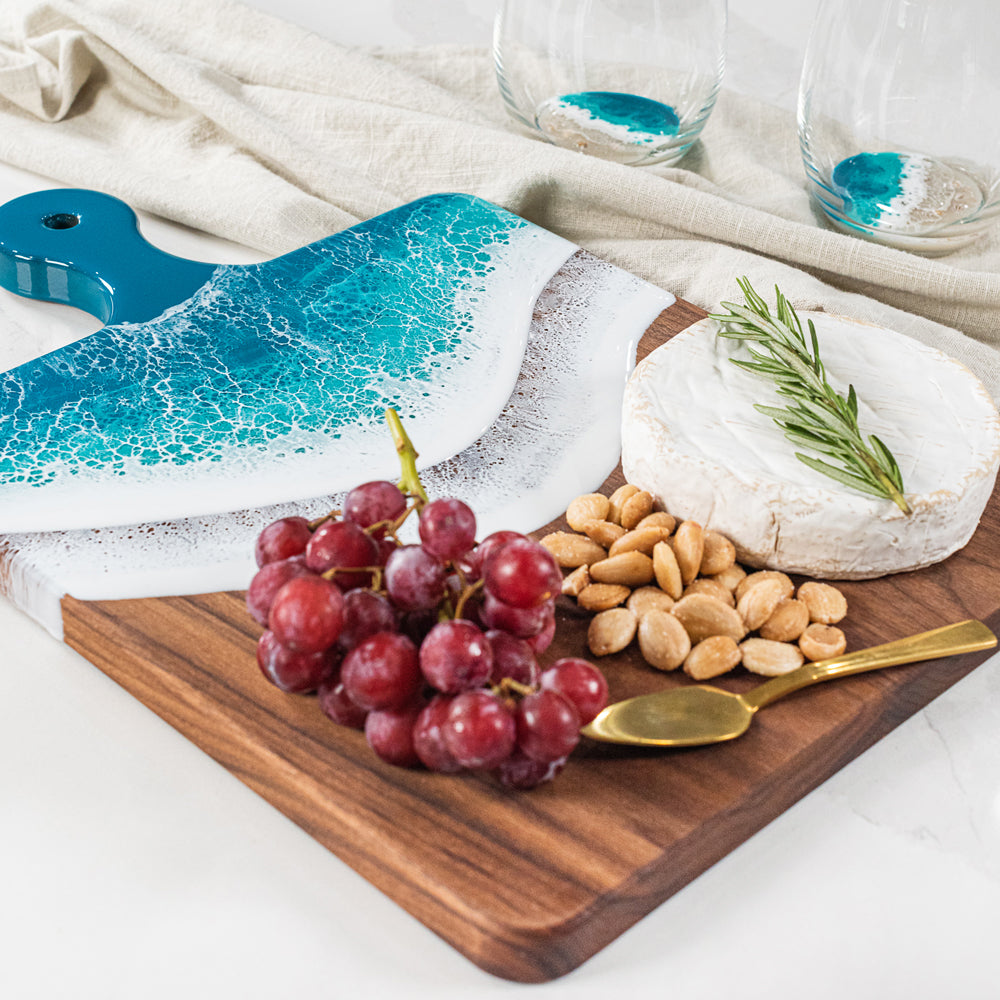These gorgeous resin and wood serving boards are the perfect way to get the party started. Each board is one-of-a-kind. They make a great housewarming or wedding gift. Now you can have a picnic on the beach no matter where you are!