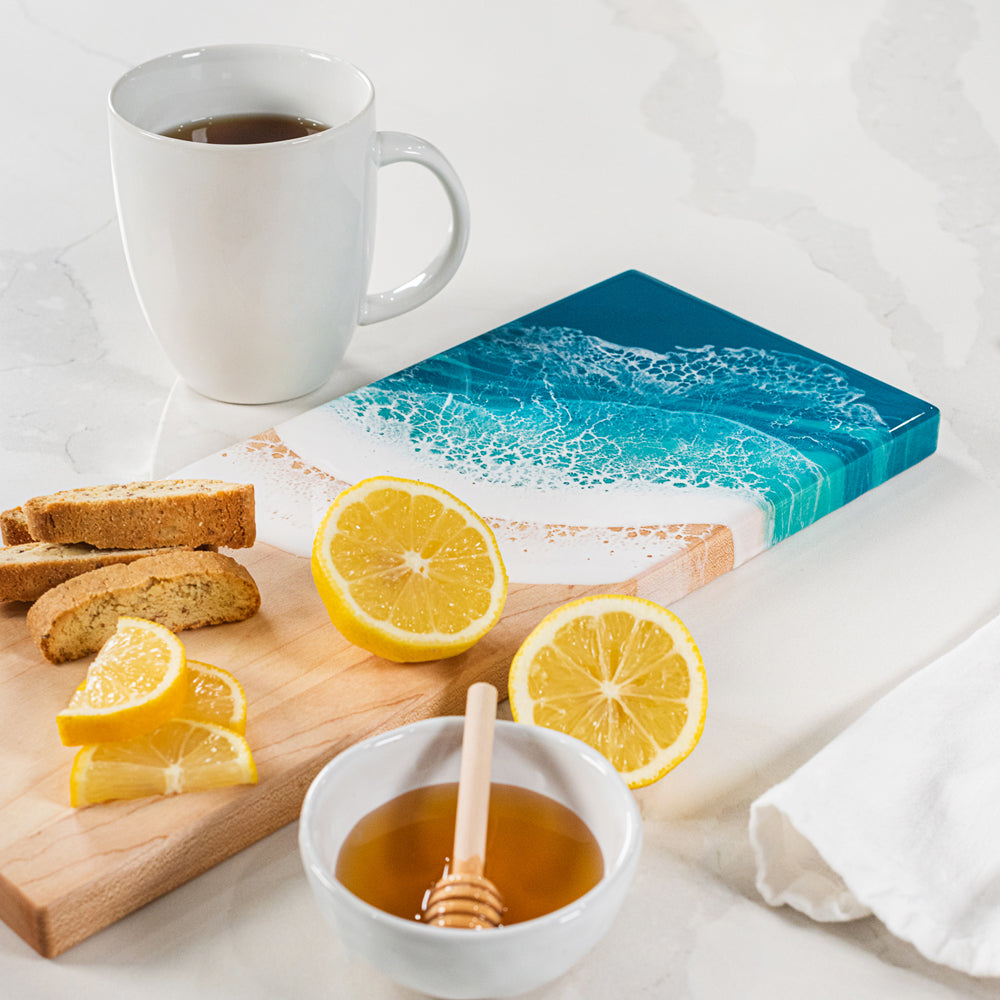 These gorgeous resin and wood serving boards are the perfect way to get the party started. Each board is one-of-a-kind. They make a great housewarming or wedding gift. Now you can have a picnic on the beach no matter where you are!
